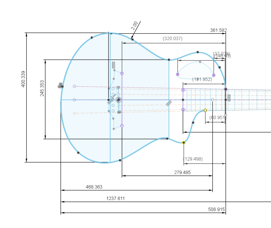 Una vez que sus proporciones sean las correctas, pasaremos al entorno de diseño de Fusion 360. Creará un boceto paramétrico en 2D de su cuerpo y cuello, definirá las dimensiones críticas y generará geometría limpia para rutas de corte y plantillas. Cubriremos herramientas clave como restricciones, reflejo, parámetros de usuario y bloques de diseño modulares, todo ello adaptado al flujo de trabajo del luthier y a la lógica CNC/CAM.