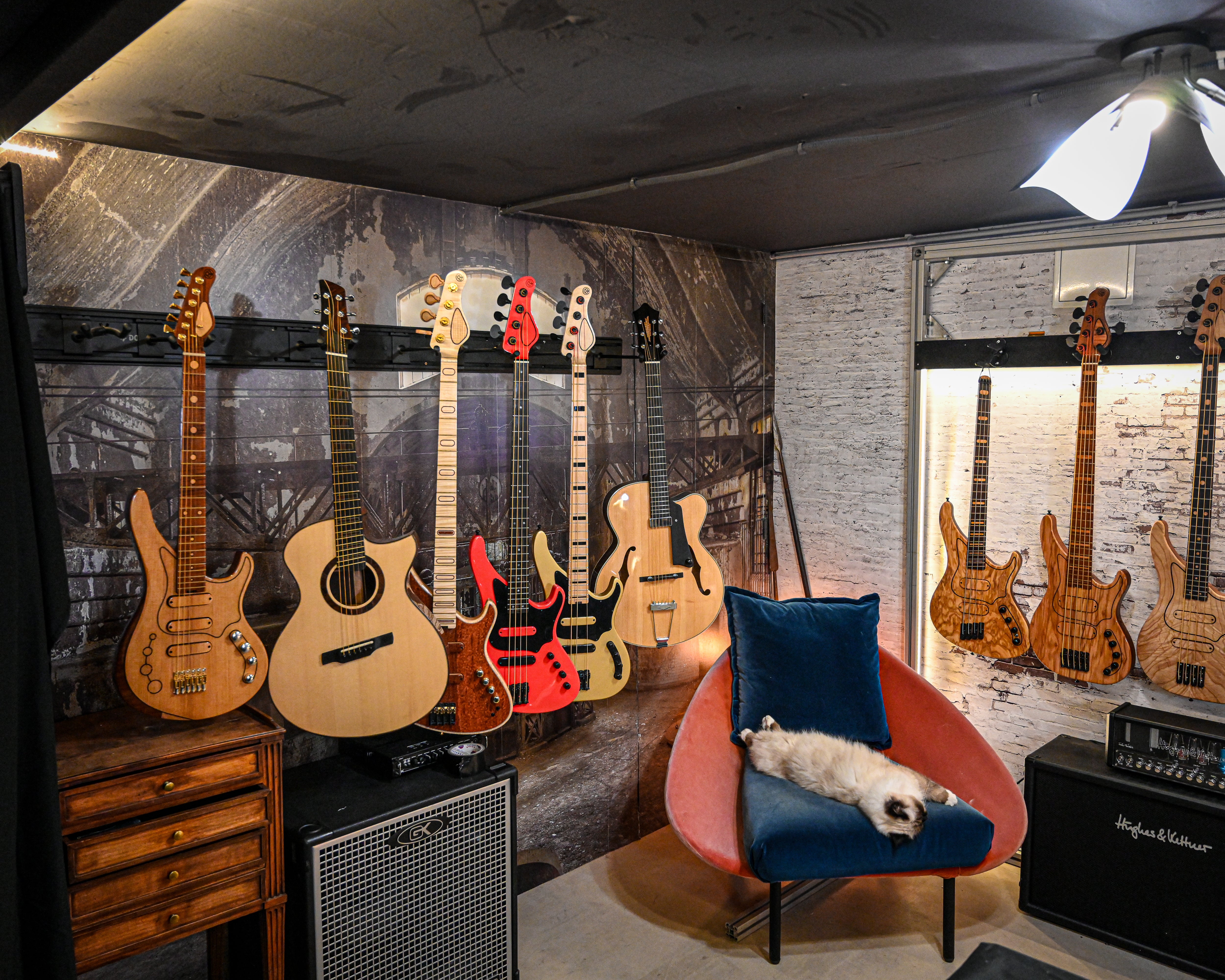 The showroom is also a place of connection: whether you’re dropping off an instrument for repair or visiting out of curiosity, you can discuss specifications, finishes, wood choices, or even design ideas for your future custom build.